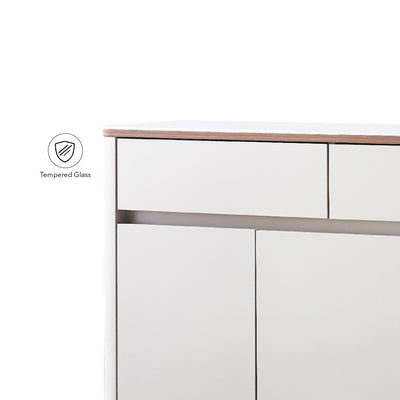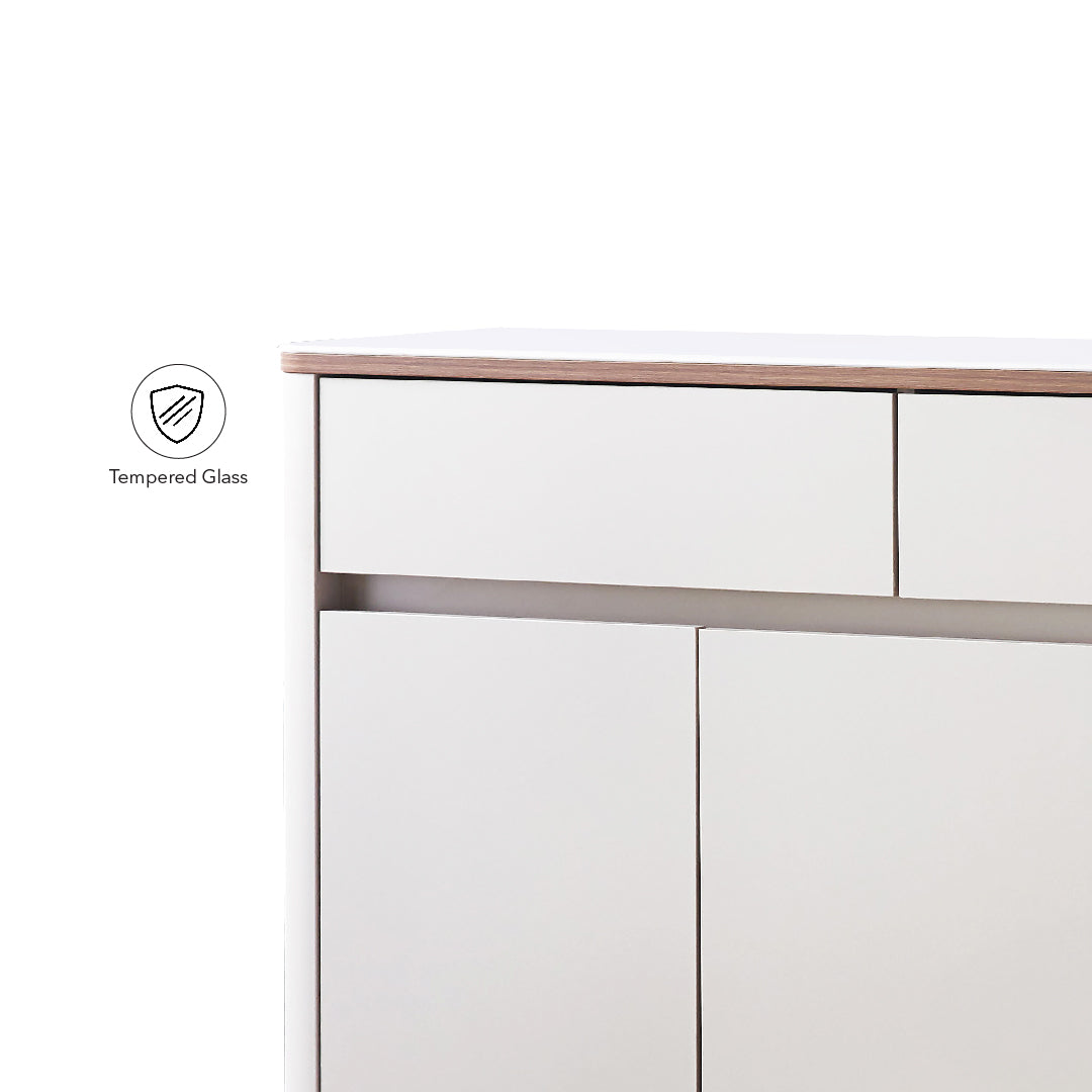 A stylish storage solution featuring a ceramic marble top, PVC vacuum body, and sturdy metal legs. Designed with 3 open doors and 2 drawers, it blends modern elegance with practical organization for your footwear and essentials.