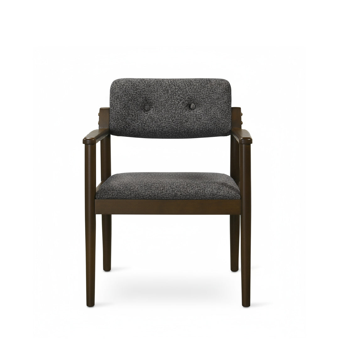 The Mahdu Dining Set combines comfort and classic style with its solid rubberwood construction in a dark walnut finish. The set includes a sturdy dining table and six cushioned fabric chairs, offering both durability and elegance for everyday dining.