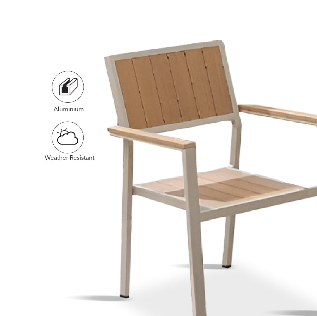 The Anson Garden Set is a stylish and durable outdoor furniture collection, perfect for any garden or patio. Featuring a round table and four matching chairs, this set is crafted with a full aluminum frame, wood-plastic composite accents, and stainless steel screws, ensuring long-lasting durability. Designed to withstand the elements, it is weather-resistant and anti-rust, making it ideal for year-round use. The Anson Garden Set combines practicality with modern design, providing a comfortable and elegant space for outdoor dining and relaxation.