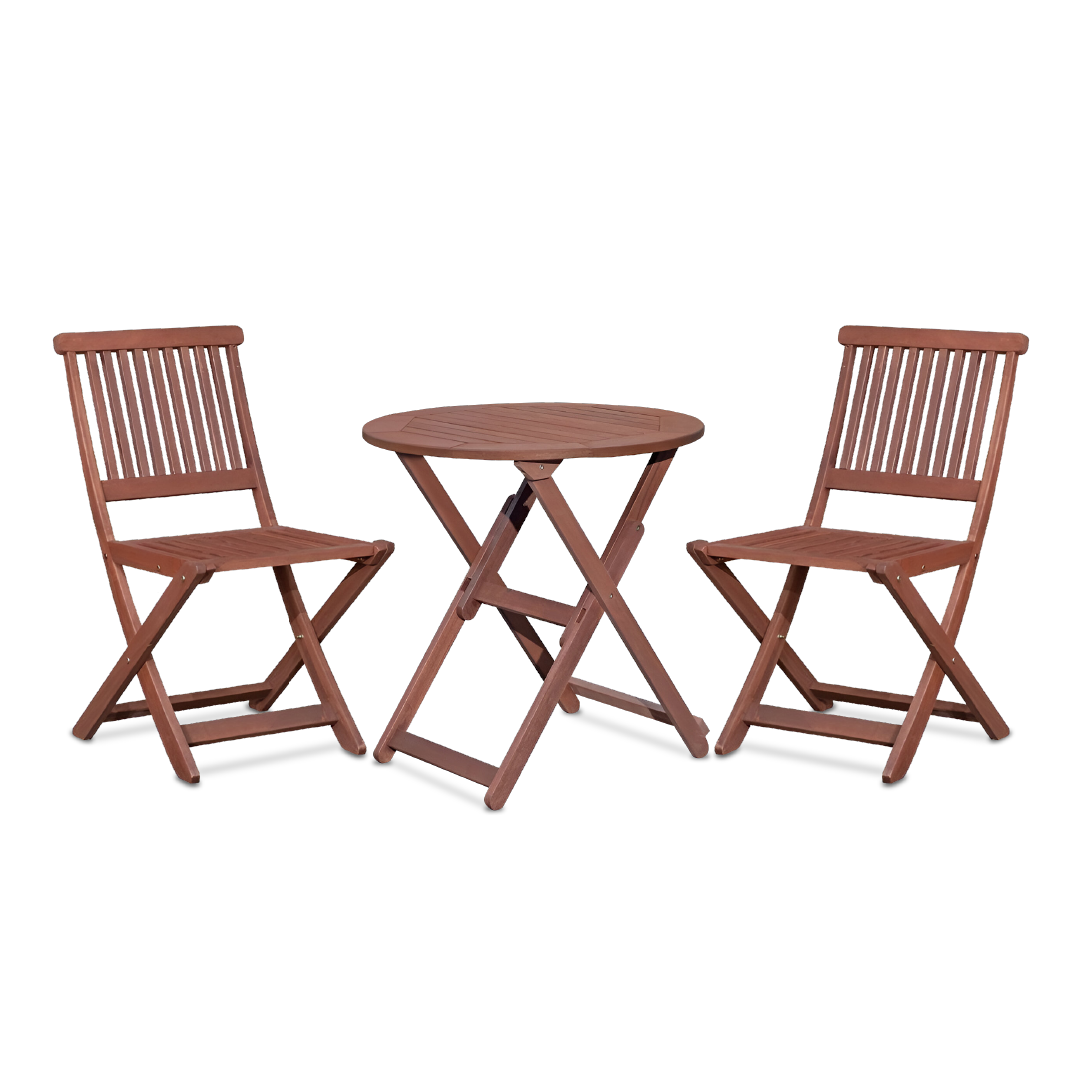 The Osaka II Garden Set with Foldable Chair is designed for outdoor gatherings and relaxation. The set includes a round foldable table and two folding arm garden chairs, all made from durable full rainforest wood. The rich Mahogany color adds elegance to outdoor spaces while ensuring long-lasting quality and style. This set is ideal for outdoor dining, picnics, or patio settings, combining functionality with a timeless design for a welcoming outdoor atmosphere.