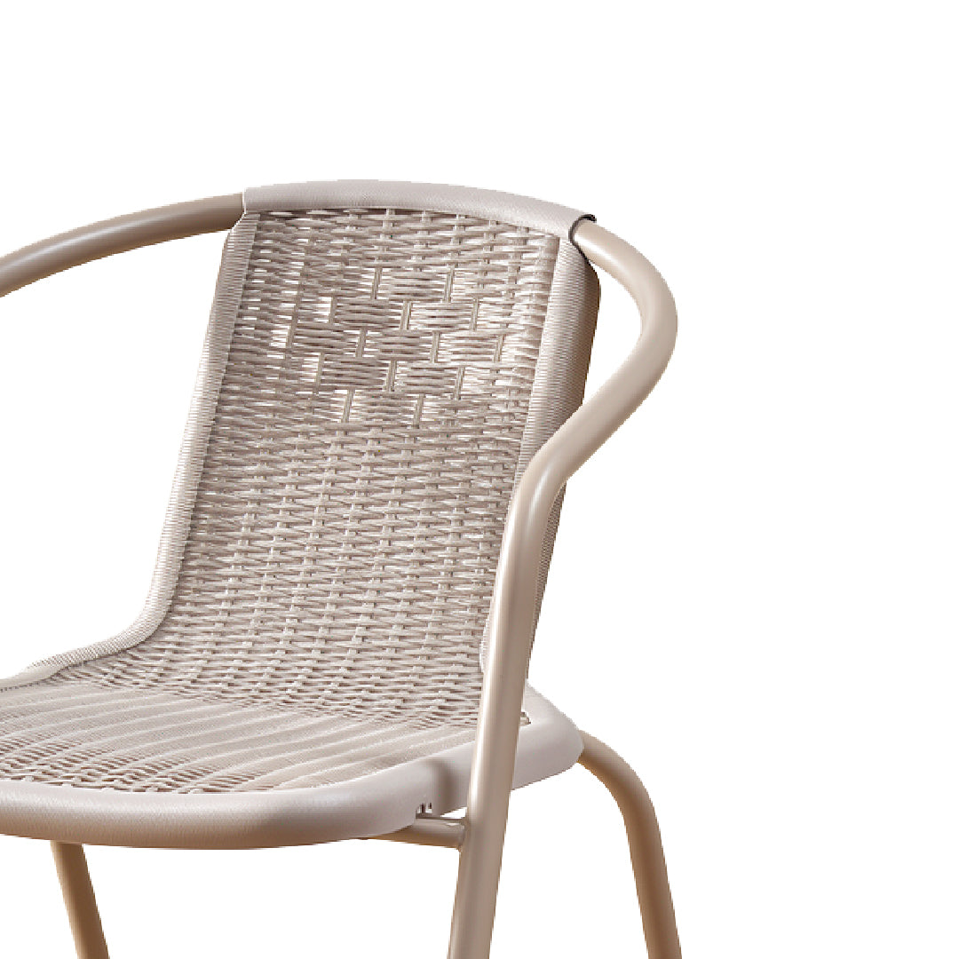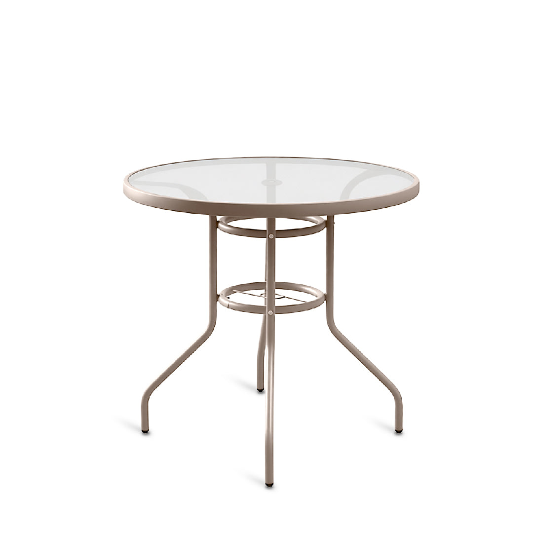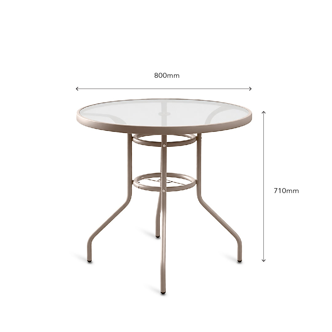 Create a stylish outdoor retreat with the VERANDA Garden Set, featuring a sleek glass-top table and four comfortable rattan chairs. Designed with durable powder-coated metal frames in light beige tones, this set offers modern elegance, easy maintenance, and lasting outdoor performance.