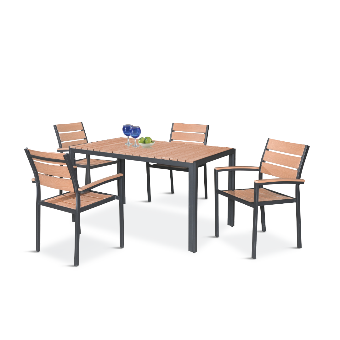 Announcing the GUL Rectangle Garden Set, made of the highest quality materials for utmost strength and design. Our chairs and table have a modern design and are made of Wood-Plastic Composite (WPC) material, which guarantees durability. It is perfect for outdoor use because of the additional layer of protection provided by the powder-coated frame. The GUL Rectangle Garden Set's style and comfort will enhance your outside area.