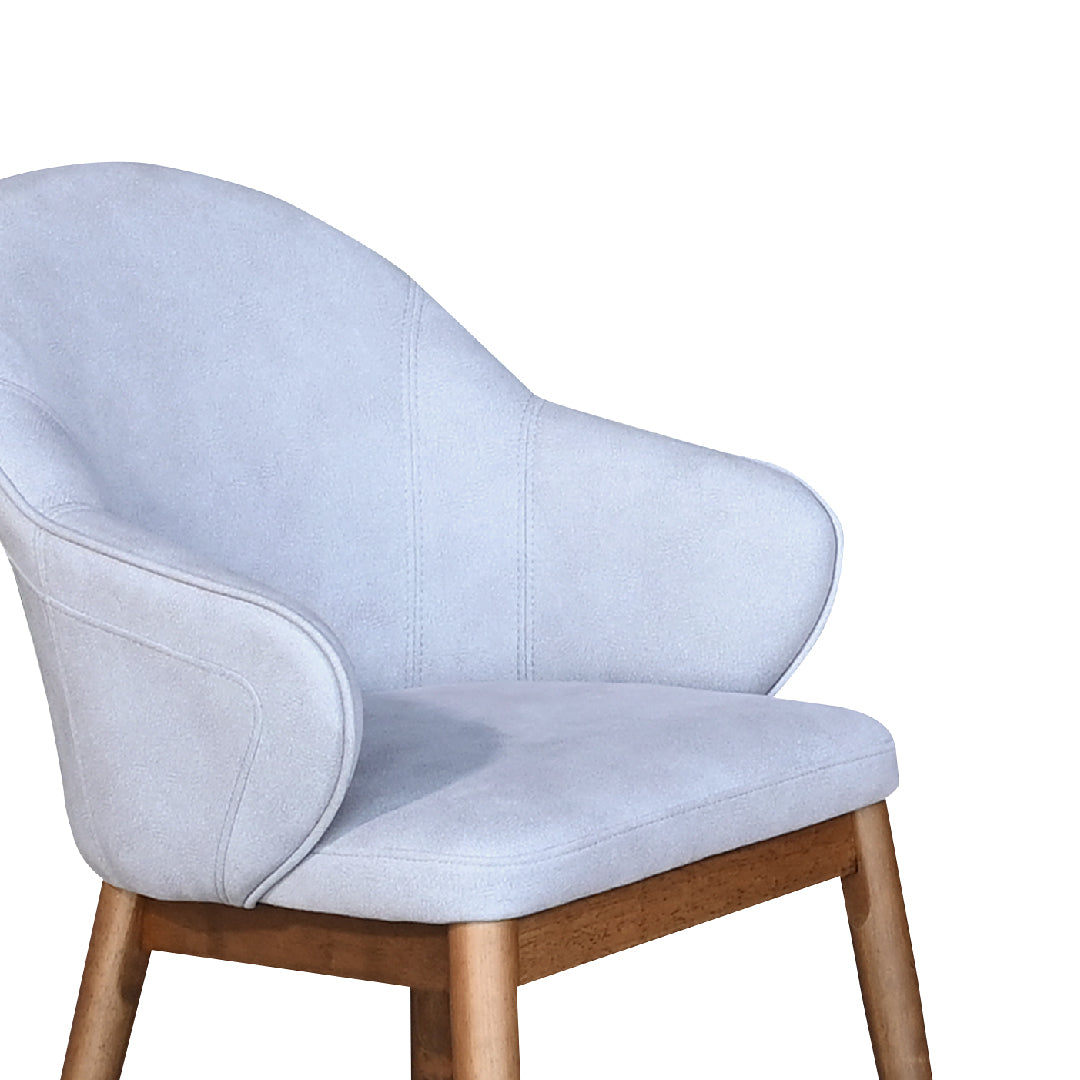 The IKI Dining Chair with Armrest combines a cozy light grey fabric seat with elegant wooden legs, creating a relaxed yet stylish feel. With its supportive armrests and clean design, it’s a versatile choice for both casual and modern dining settings.