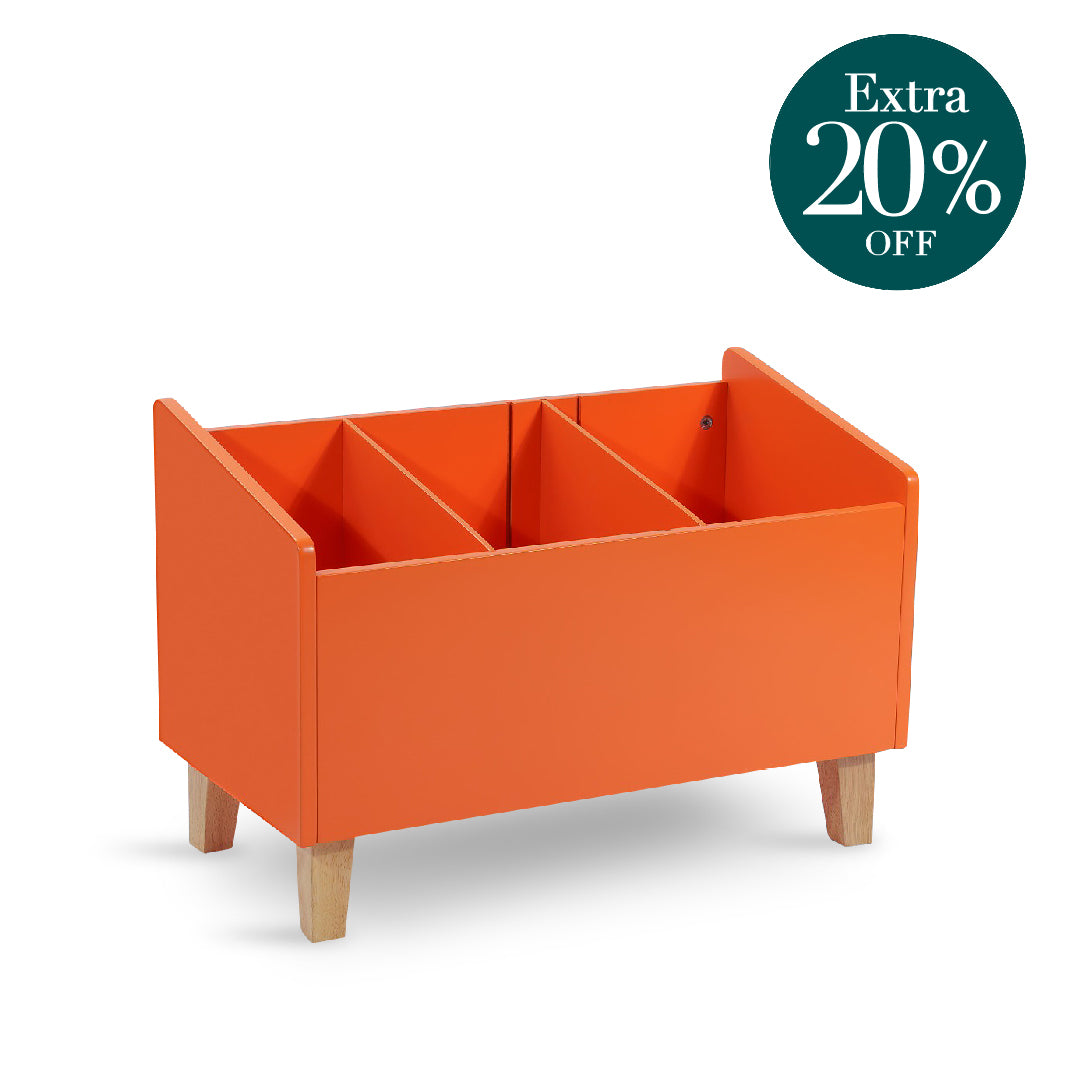 The Neo Toy Shelf is a vibrant and practical storage solution, featuring a cheerful tangerine finish with natural-colored legs. Made from durable rubberwood and MDF, it offers 3 spacious compartments to keep toys, books, and essentials neatly organized. Designed with a Montessori-inspired approach, it encourages children to access and organize their belongings independently. Perfect for adding a playful touch to any space!