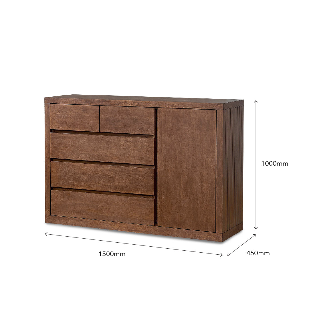 RAILEY 5 Drawer & 1 Door Solid Wood Chest of Drawers