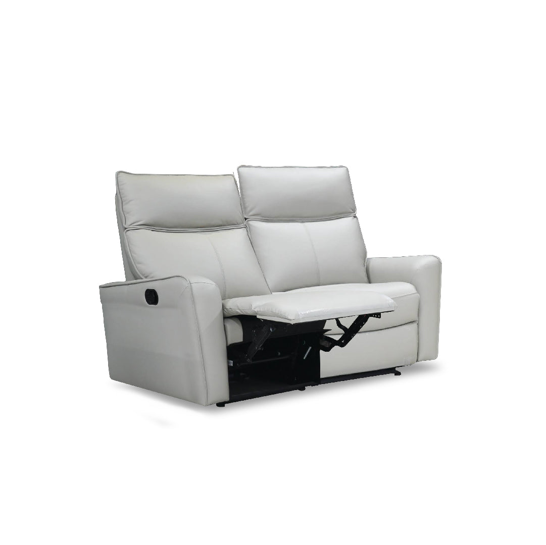 The Lior Recliner Sofa Set, available in configurations like 3+2+1, 2+3, and 1+3 seater, combines comfort and style with high-density foam seats, high resilience foam backrests, and a durable plywood/Meranti wood frame. Finished in light grey and flexible relaxation with a sleek, modern design.