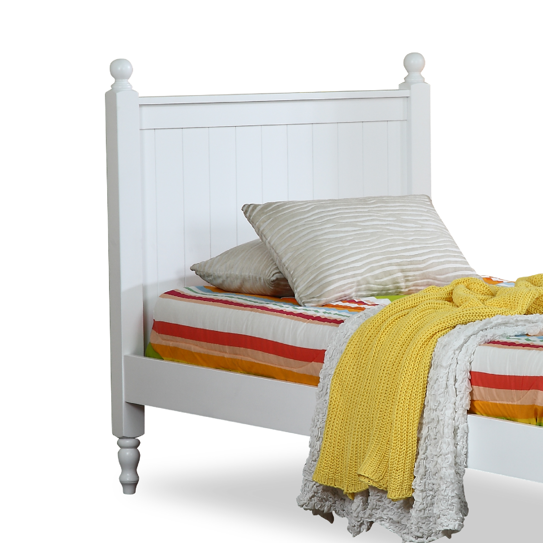The Acacia Bed is a thoughtfully designed piece of furniture made from durable materials like MDF and rubberwood. Its eco-friendly paint and child-safe furnishings make it an excellent choice for both adults and children alike, offering a blend of quality, safety, and environmental responsibility for your bedroom.