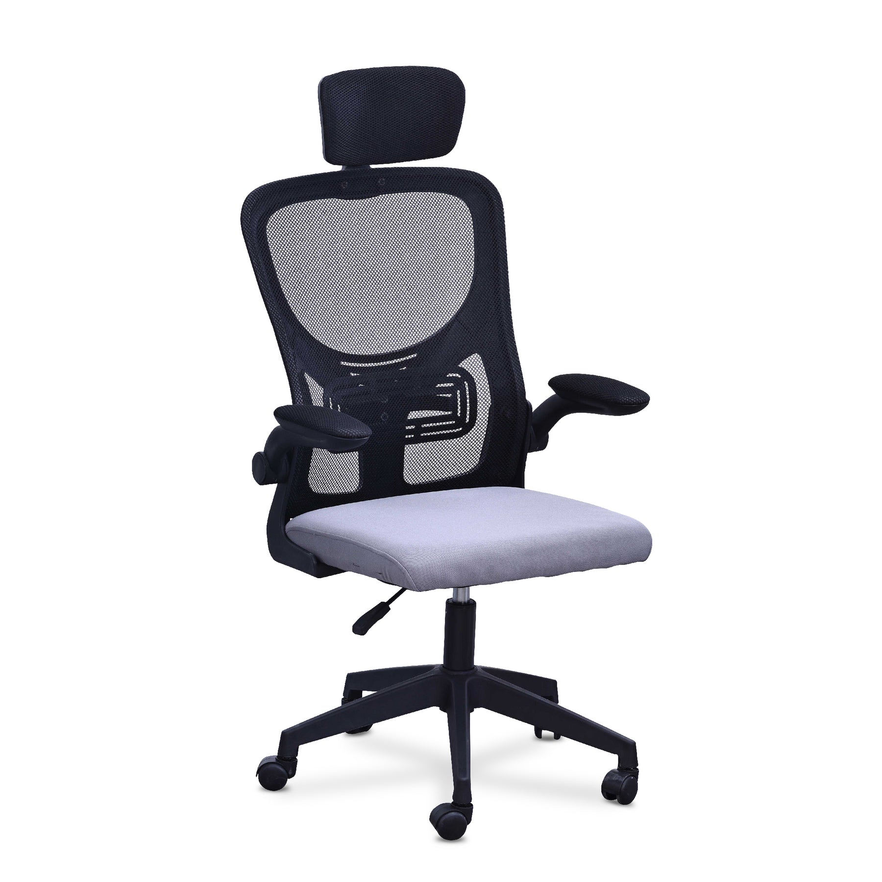 The Sadros High Back Office Chair combines comfort and functionality with its supportive mesh back and cushioned fabric seat. Built with a sturdy polypropylene base and standard gas lift, it offers adjustable height and armrests for personalized ergonomic comfort throughout the day.