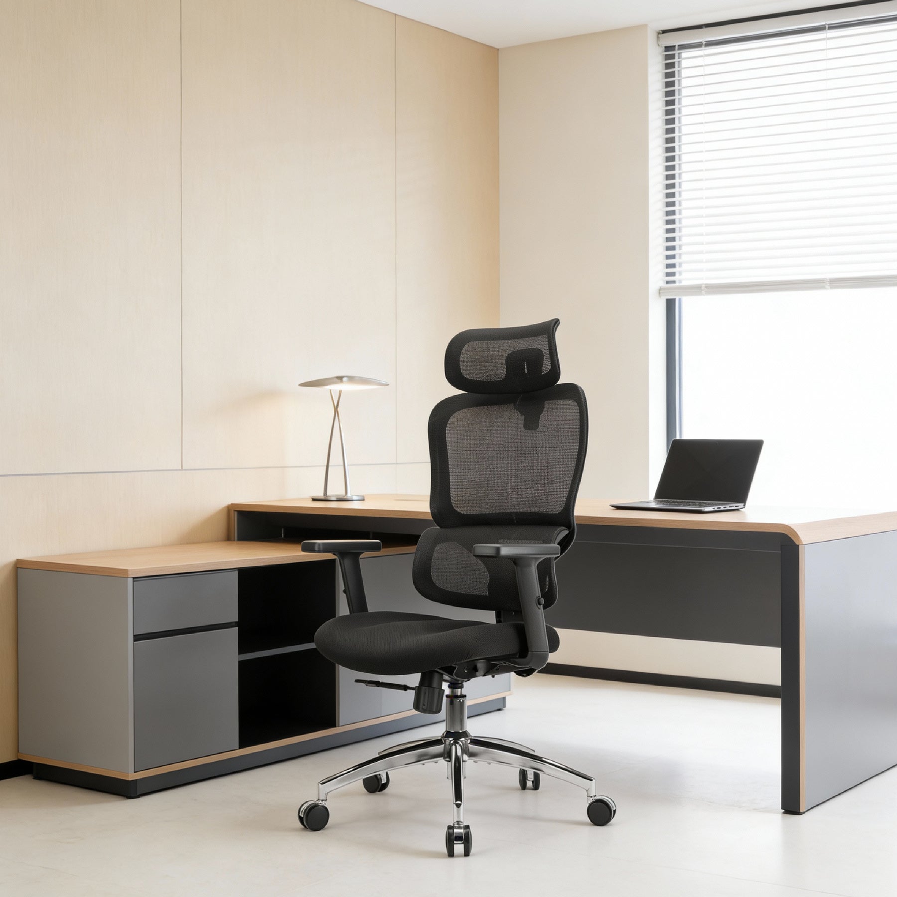 The Sihoo High Back Office Chair is designed for all-day comfort with a breathable mesh back, supportive foam cushion, and durable PU castors. Featuring height-adjustable backrest and headrest, adaptive elastic lumbar support, 2D adjustable armrests, and a W-shaped pressure-relief cushion, it offers ergonomic support with a sleek black finish. Backed by a 3-year warranty.