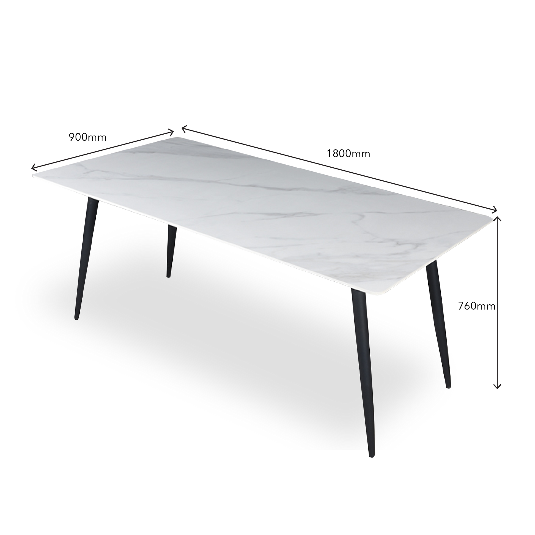- Dining Table: L1800 x D900 x H760mm