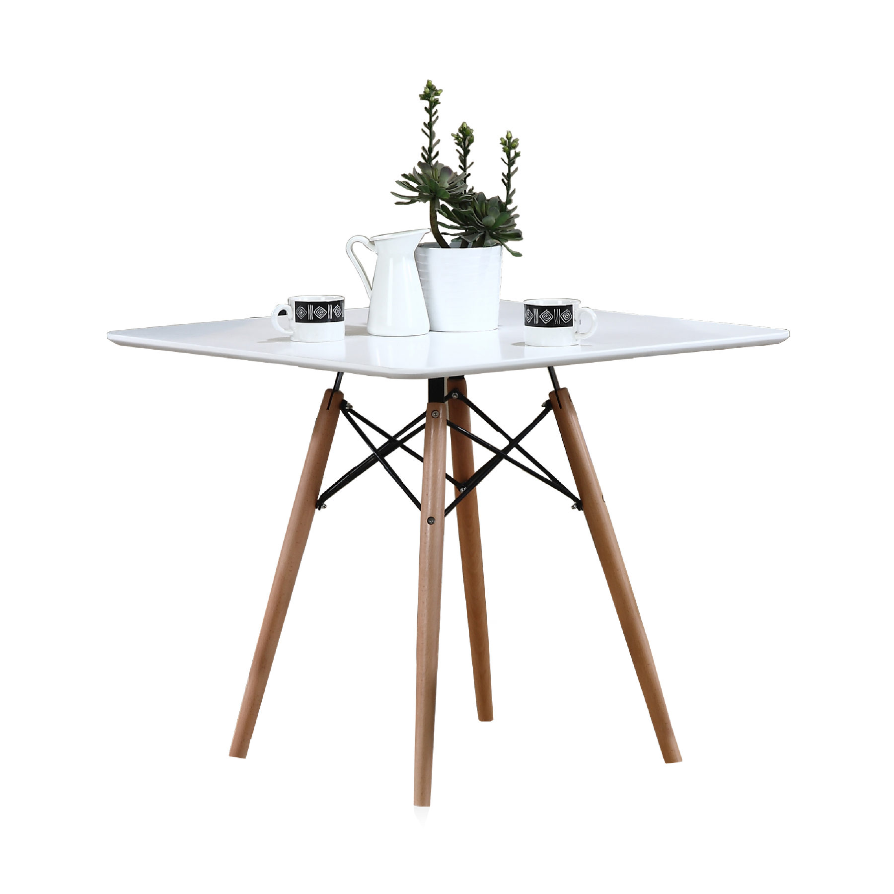 The WINONA Cafe Set is the ideal combination of design and endurance. The table's powder-coated oak legs and elegant square melamine top with a white spray finish are the perfect complements to one another. High-quality polypropylene (PP) used in the chairs' construction guarantees its comfort and durability. The WINONA Cafe Set's elegant design will elevate your eating experience.